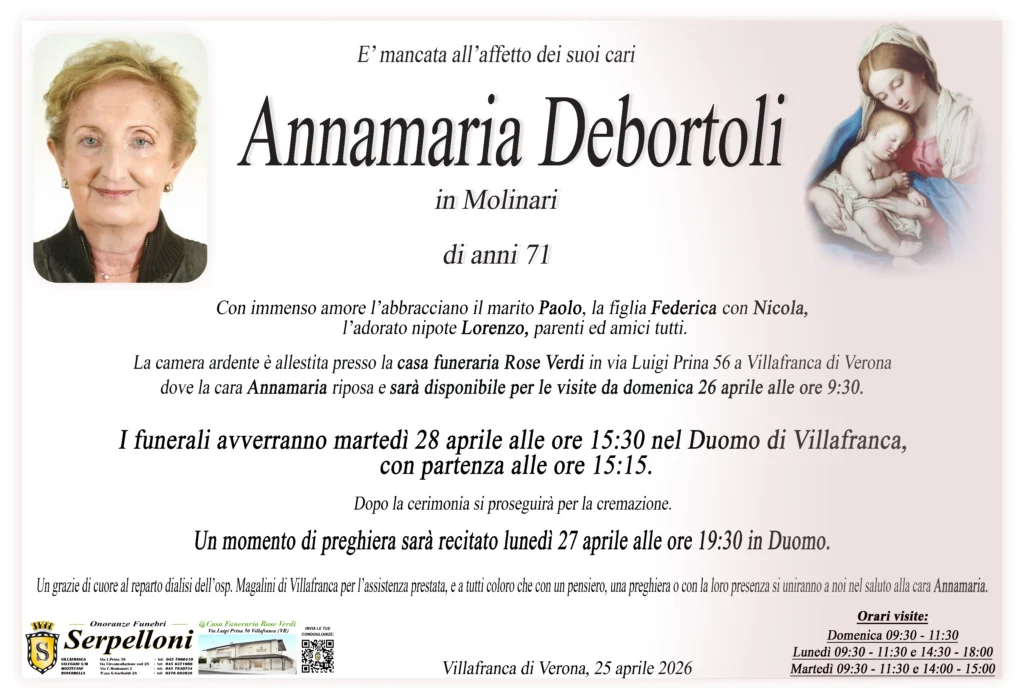 I FUNERALI AVVERRANNO MARTEDì 28 APRILE ALLE ORE 15:30