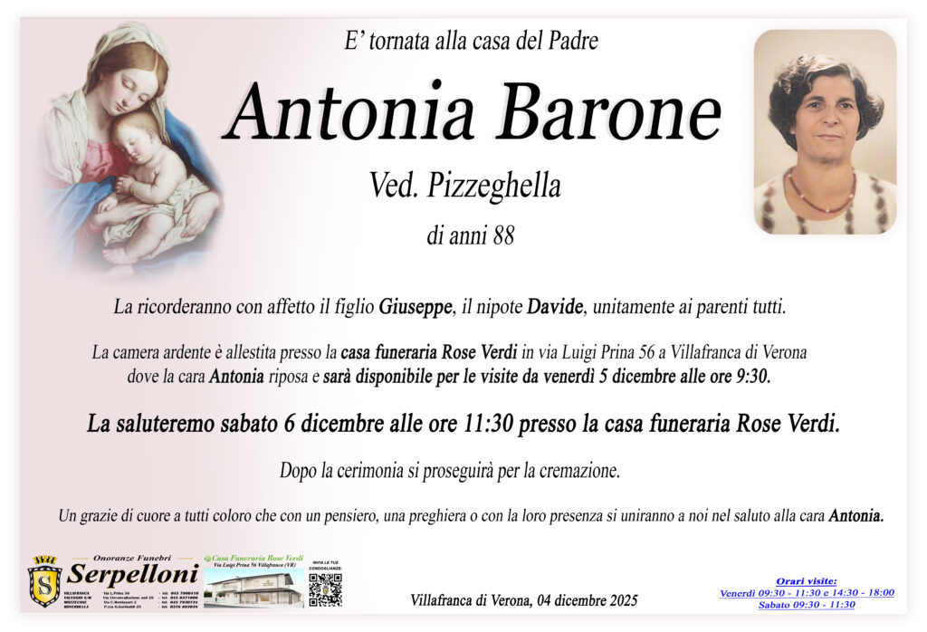 Antonia Barone la saluteremo sabato 6 DICEMBRE ALLE ORE 11:30presso la casa funeraria rose verdi Compila il form per esprimere la tua vicinanza ai suoi cari Name *CellulareEmail *Messaggio *0 / 500Privacy *Ho preso attenta visione dell’ informativa privacy e acconsento al trattamento dei miei dati personali, secondo le modalità e i termini specificati all’interno nella stessa. Invia CONDIVIDI LA NOTIZIA