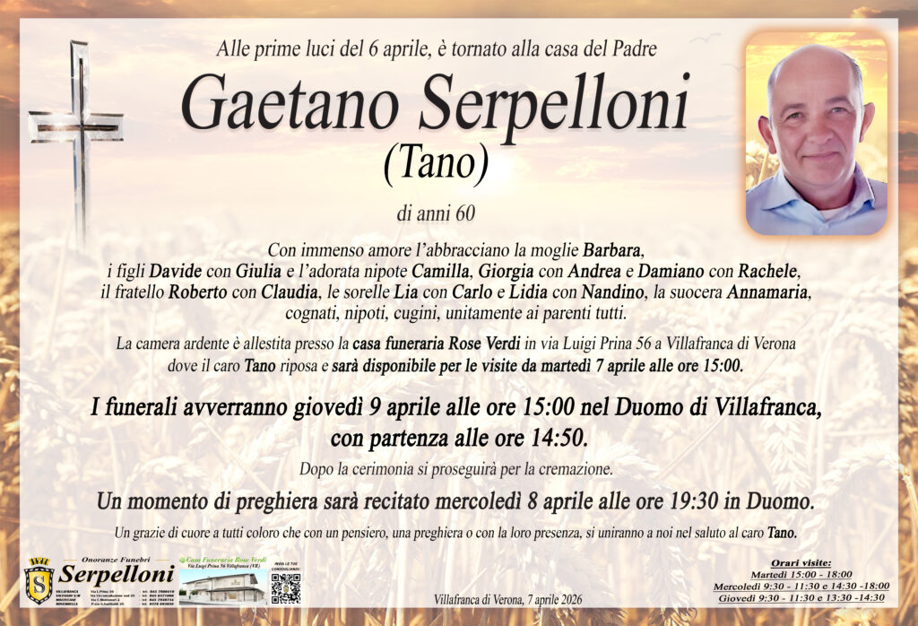 I FUNERALI AVVERRANNO GIOVEDì 9 APRILE ALLE ORE 15:00