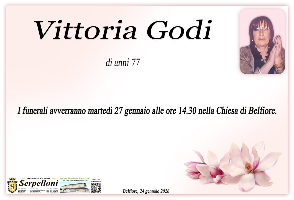 Vittoria Godi I FUNERALI AVVERRANNO Sabato 24 GENNAIO ALLE ORE 9:30nella chiesa di CASTIGLIONE MANTOVANO Compila il form per esprimere la tua vicinanza ai suoi cari Name *CellulareEmail *Messaggio *0 / 500Privacy *Ho preso attenta visione dell’ informativa privacy e acconsento al trattamento dei miei dati personali, secondo le modalità e i termini specificati all’interno nella stessa. Invia CONDIVIDI LA NOTIZIA
